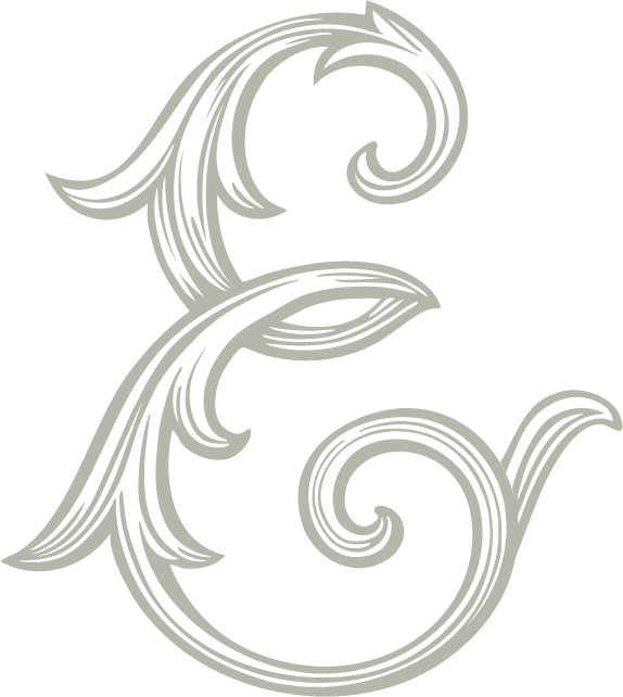 Decorative, ornate design with swirling lines resembling an elegant letter 'E' on a black background.